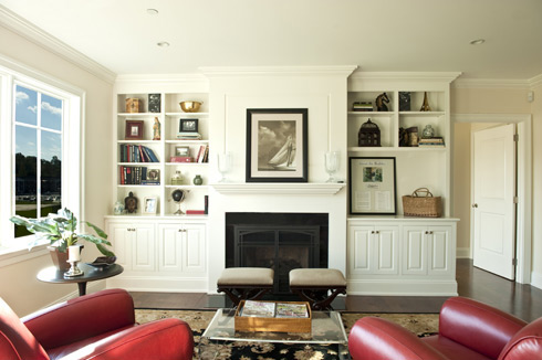 Gas Fireplaces with Marble Hearth and Ceiling Height Paneled Mantel